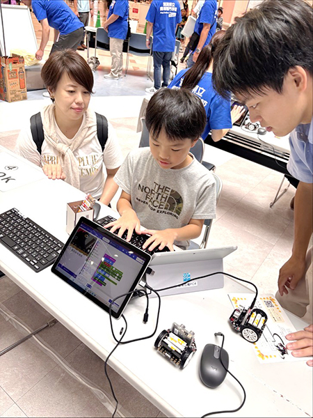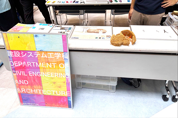 今回のイベントでは、科学・工作体験として「オリジナルキーホルダーづくり(ナットさん)」「建設製図制作の学生作品」「惑星探査ロボットの操縦体験」「LED点灯制御、画像処理、学生作成ゲームの展示と体験」が行われました。そのほか、随時来場者の質問にこたえるなど、多くの人が関心を寄せていました。