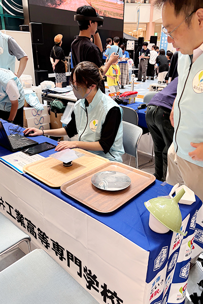 「各高専ブース」では、滋賀県立高専開設準備局は、科学・工作体験として「ロボカーリング」「オリジナルペン立てづくり」を実施したほか「個別相談」「ポスター展示・資料コーナー」を実施、舞鶴高専と福井高専も科学・工作体験が行われ、開始早々から体験プログラムには行列ができており、子どもたちの心待ちにしている様子が見受けられました。