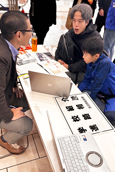 今回のイベントでは、「ロープワーク体験」や「ミニロボコン体験」を実施され、自分の思うようにできた時の子どもたちの嬉しそうな笑顔が印象的でした。また、「学校紹介・進路相談」も行われ、保護者の方は真剣な表情で話を聞いていました。